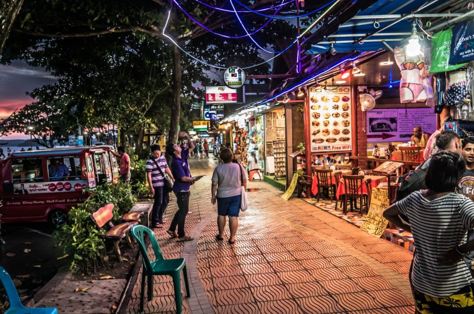 Efter Koh Lanta sejlede vi til Ao Nang, som er et sandt turist-mekka med bunker af resorts, restauranter og butikker langs strandpromenaden. Efter at have boet relativt afsides steder i lang tid tænkte vi, at det var fint med noget byliv. Vi logerede ind på Phra Nang Inn, som ligger nærmest lige i hjertet af det hele.
