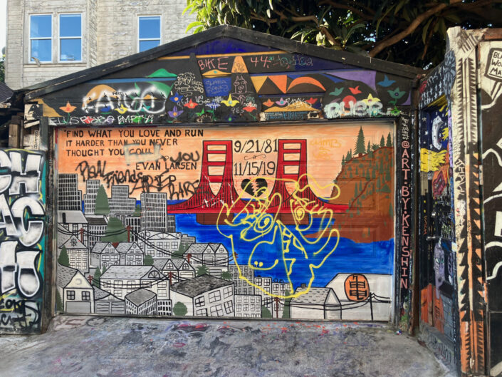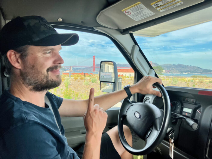 Næste morgen – tidligt – kørte vi gennem San Francisco. Det var lidt af en vanvittig tur, for vi skulle gennem de kvarterer, som er kendt for deres stejle gader – og jeg har aldrig oplevet noget lignende. På vej ind i kvarteret så vi et skilt, hvor der stod, at man ikke skulle køre ind, hvis man var et køretøj tungere end 3000 kg. Vi anede ikke, hvor tunge vi var, og valgte at køre igennem. Det var med lidt høj puls at vi kørte op ad de stejle gader. På et tidspunk holdt vi i en helt utænkelig vinkel og der blev rødt. Jeg tænkte, at nu går det galt – og camperen lød da også til at være mere på arbejde end nogensinde før, men det gik. Vi fandt en parkeringsplads, lavede morgenmad, chillede lidt, og da det blev lyst gik vi på en morgentur ind i Mission District.