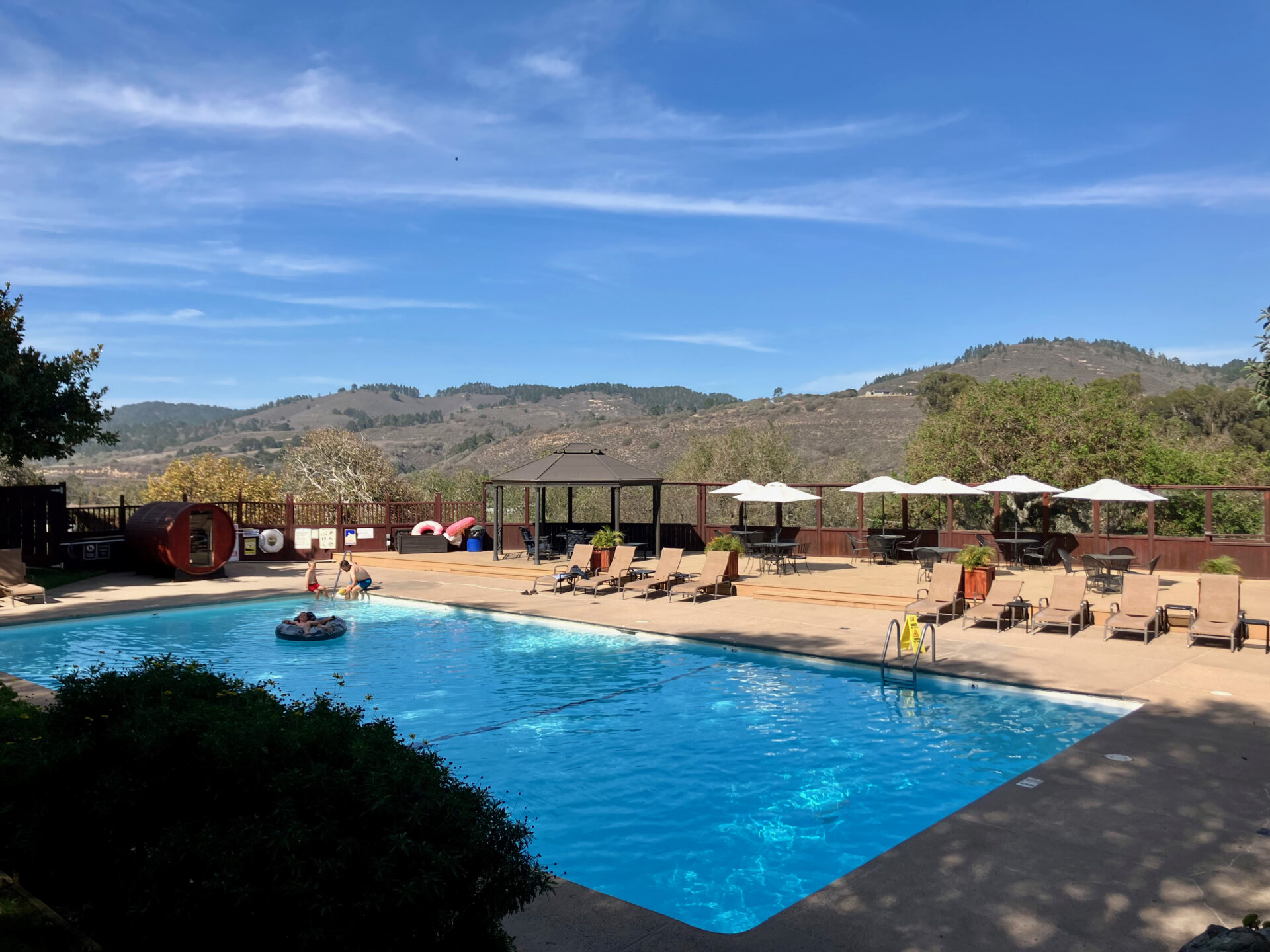Efter vores tur i Mission Districts sump var vi klar til at komme tilbage til den storslående amerikanske natur, og vi drog mod Highway 1 i retning af Big Sur. Vi nåede til Carmel, hvor vi fandt den mest charmerende lille campingplads, Saddle Ranch – igen igen med en vej så stejl at de helt store RVs ikke kunne komme derop. Igen en fantastisk udsigt – og så til drengenes store fornøjelse: Swimming pool, bordtennisbord og basketball bane. Det var skønt at være på en campingplads for en gang skyld. Vi mødte de sødeste amerikanere. Ved siden af os holdt Rob og Nancy, som straks henvendte sig til os og spurgte hvor vi kom fra. Inden der var gået halvandet minut havde vi alle styr på hinandens navne. Nancy fortalte os, at de havde holdt bryllupsrejse på præcis denne campingplads, og inden for en time ville nogle af deres venner ankomme. Som hun sagde med tyk amerikansk accent. ”Oh, they are lovely, you are gonna love them, too” – til hvilket hendes mand med et stort smile sagde. “Relax Nancy, you don’t know if these people love us yet”. Og Nancy slog en stor, varm og hjertelig latter op. Vi elsker amerikanernes imødekommenhed og lyst til at snakke.