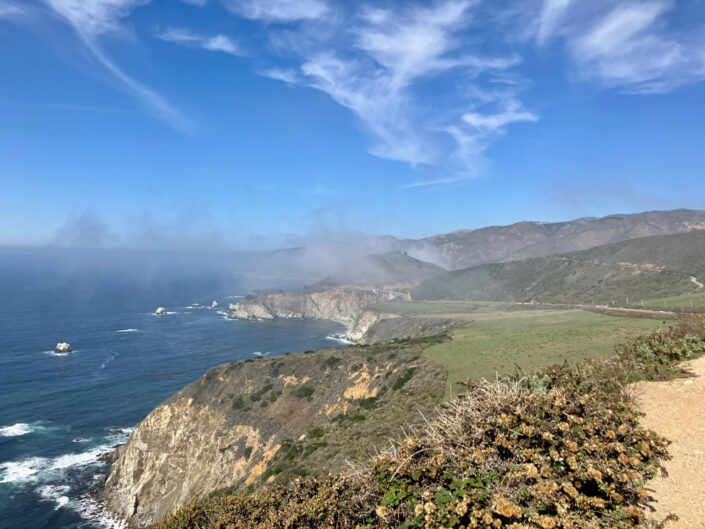 Efter tømning og fyldning af camperen tog vi videre mod Big Sur. Big Sur er et område med nogle fantastisk smukke klippeformationer, vandrestier og vandfald helt ude ved vestkysten. Når man kører langs Highway one oplever man det hele på aller smukkeste hold. Vejen går nogle steder helt ude ved klippeskrænten, og man forstår næsten ikke hvor smukt, det er, når man kører der.