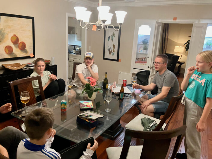 Efter en uge i camper – ikke mindst med den sidste nat i bagagen glædede vi os til at aflevere camperen og checke ind hos Elisabet og Claus. Og det var nøjagtig lige så dejligt som vi havde håbet. Et fuldt udstyret hus med dejlige bløde møbler på den solbeskinnede terrasse, kolde øl, et langt varmt bad, et velsmagende måltid, som der kræver et ordentligt køkken at tilberede, en kæmpe stor blød seng og skønt selskab med vores venner. Kontrasterne kan noget, når man holder ferie.