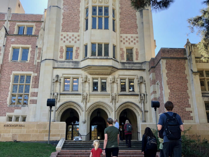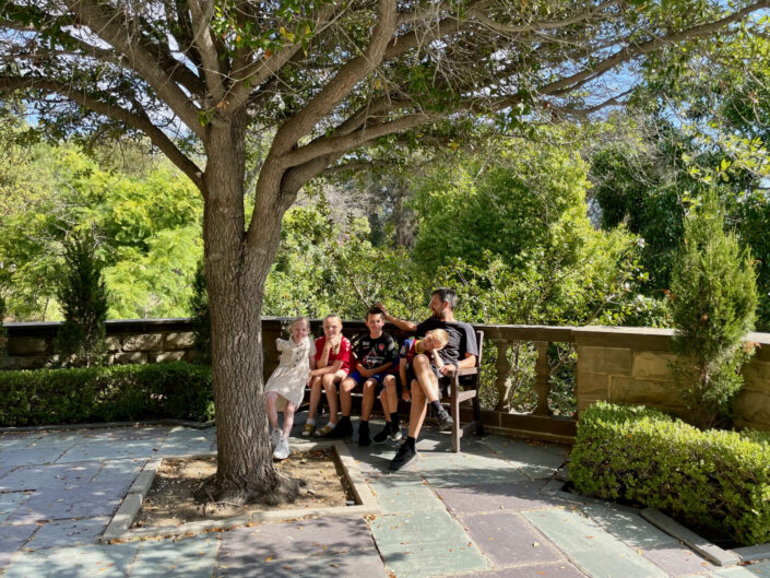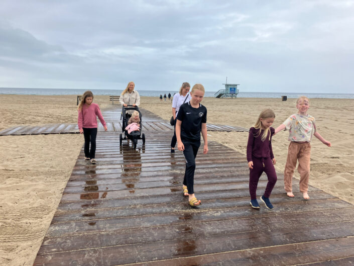 Vi nød dagene i Los Angeles, hvor vores rytme var mere rolig. Vi sov længe om morgenen, afholdt en lille bitte smule hjemme-skole, løb ture og lavede mad. Og hver dag tog vi på tur. Manhattan Beach blev besøgt flere gange – med et smut ned forbi ”Donna og Kelly’s Beachhouse”. Vi var på køreture ad Sunset Boulevard og Mulholland Boulevard, hvor de rige og kendte amerikanere bor. Vi så the Greyhound Mansion, hvor flere film er optaget, og vi var på tur i Hollywood og så stjernerne på fortovet. En dag tog vi ind til Fashion District, fordi jeg skulle se et af mine kunders showroom. Imens hang Jonas, Claus og børnene ud i ”The bike shed”. Det var et virkeligt hipt sted med motorcykel udstyr en barbér og en café – alt dekoreret med chesterfield møbler i industrielle omgivelser. Vi fortsatte denne tur ind til byen, hvor vi så Frank Gehry’s smukke koncert hus.
