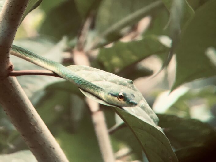 Vi gik videre ud i junglen ud til en kakaoplantage, hvor vi smagte på de frugter som senere bliver til kakao. Det var lidt overraskende, at se. Rundt om kakaobønnerne er der noget hvidt stads a’la frugtkød som smager himmelsk – og det findes både i en sød og syrlig udgave.
