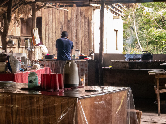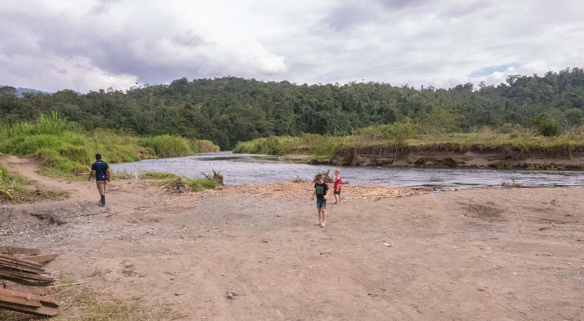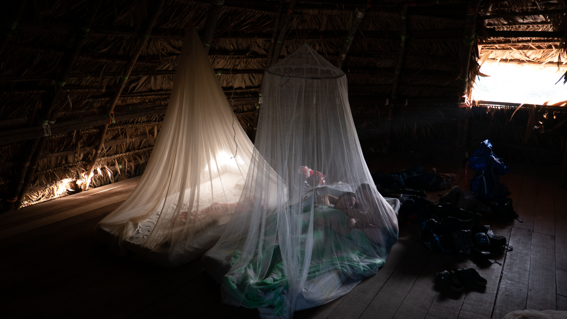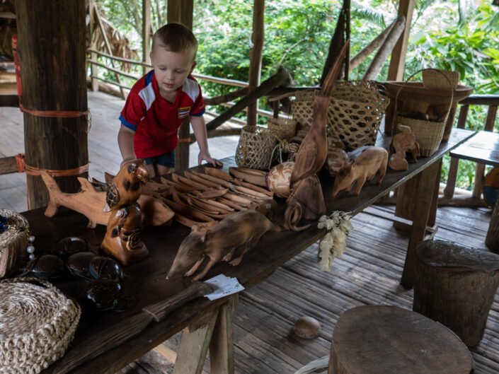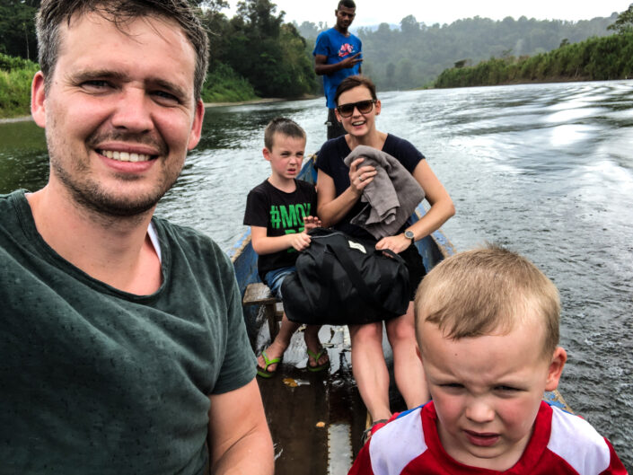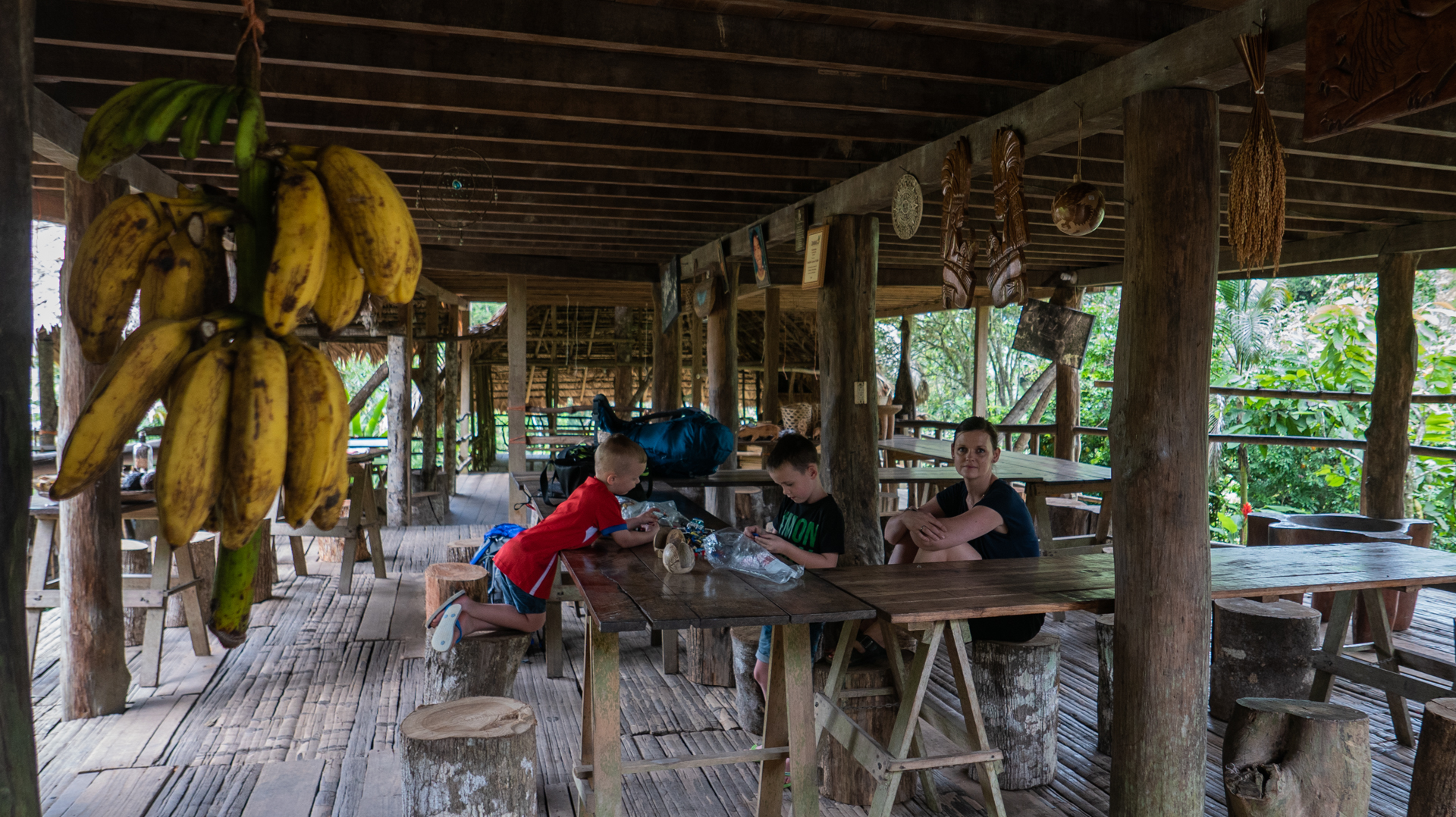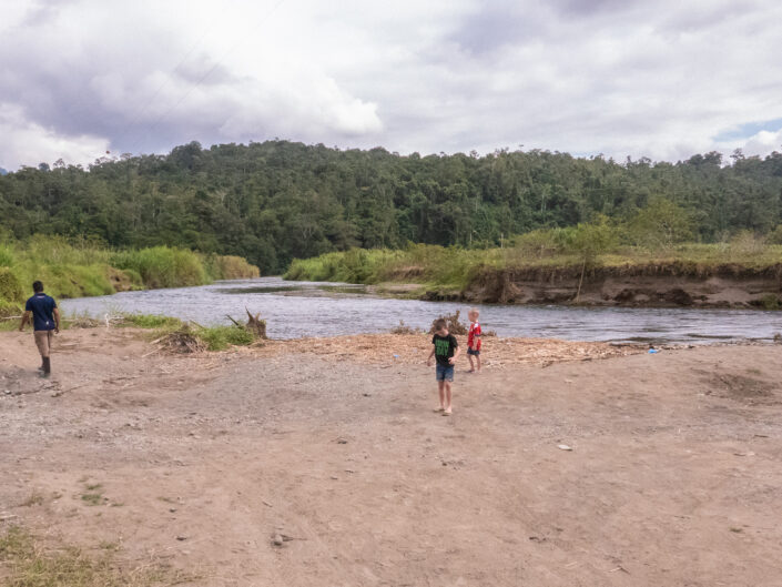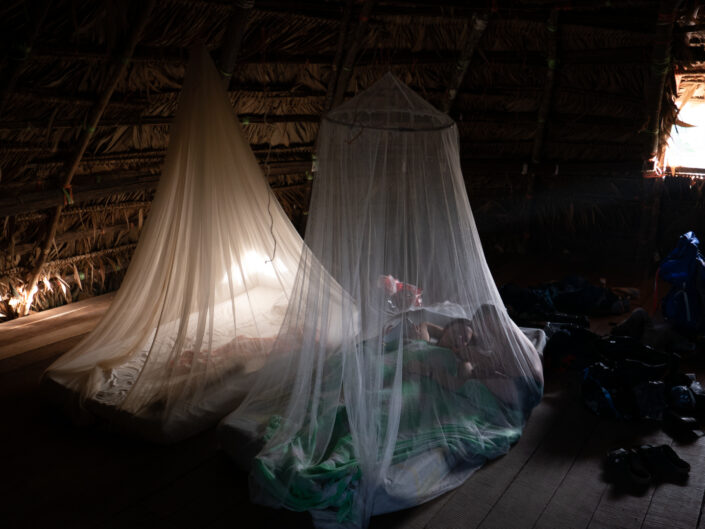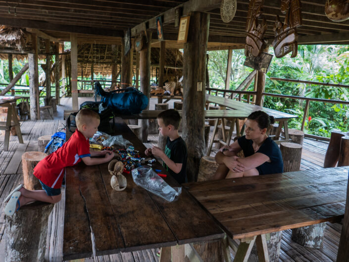 Vi fik endnu et bad i koldt vand – det er vi ved at vænne os til, og vi chillede lidt inden aftensmaden. Viggo bankede ved et uheld sit hoved ind i en træbjælke og fik en lidt dyb flænge. Det lappede vi sammen, men Viggo var enig med sig selv om, at det var dumt at bygge huse af træ. ”Hvorfor sælger de ikke bare nogle bananer til Danmark og køber nogle mursten? Så behøver de ikke bygge de dumme huse”. Vi fik en god nats søvn på tredje sal under loftet på fire madrasser hver pakket ind i myggenet. Søvnen var kun afbrudt af hunde, fugle og haner, som på forskellige tidspunkter var i gang.