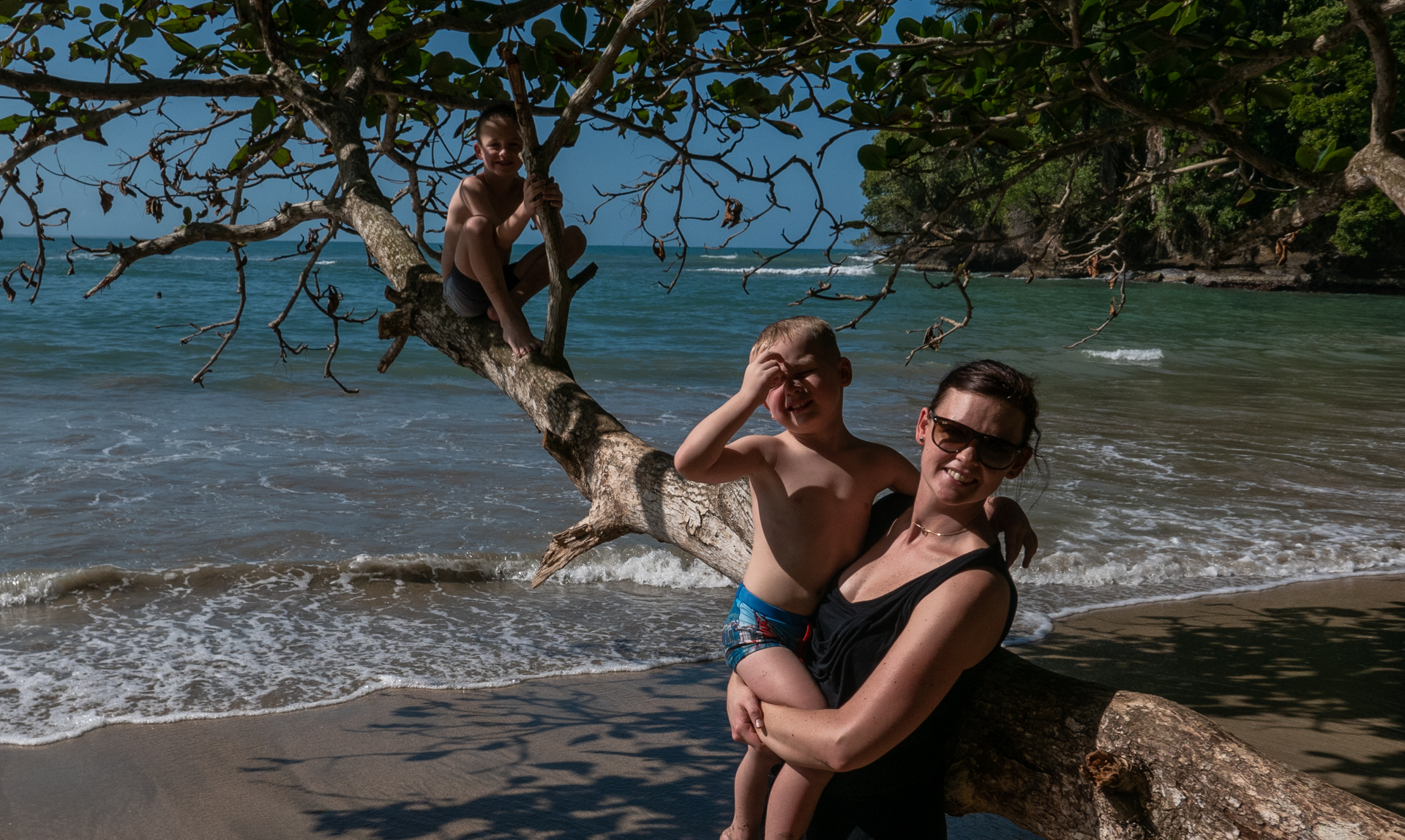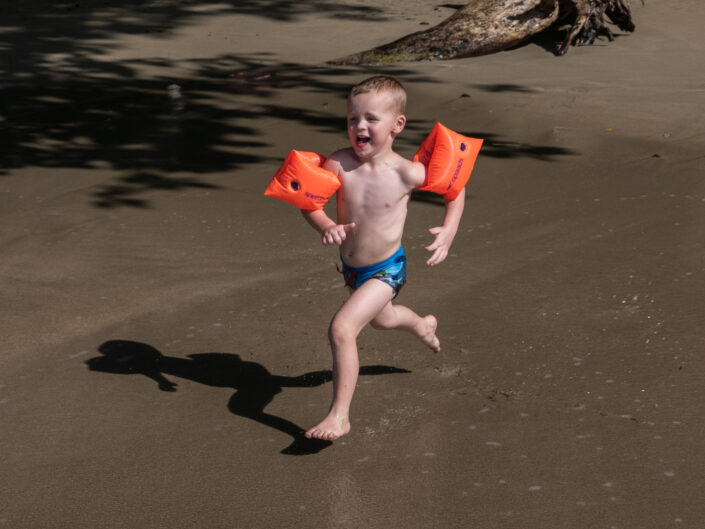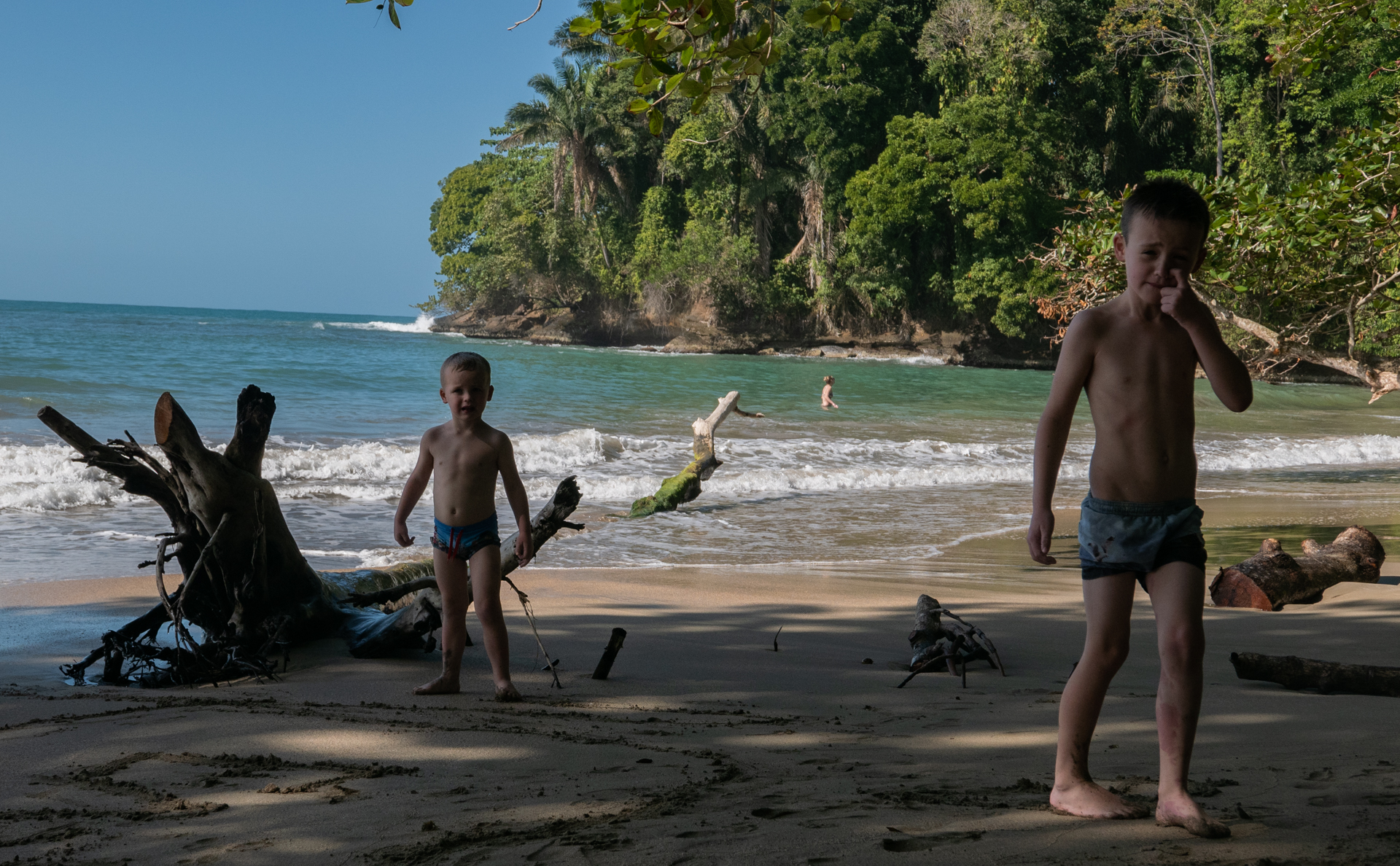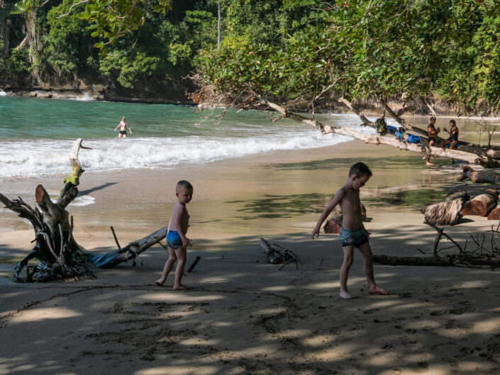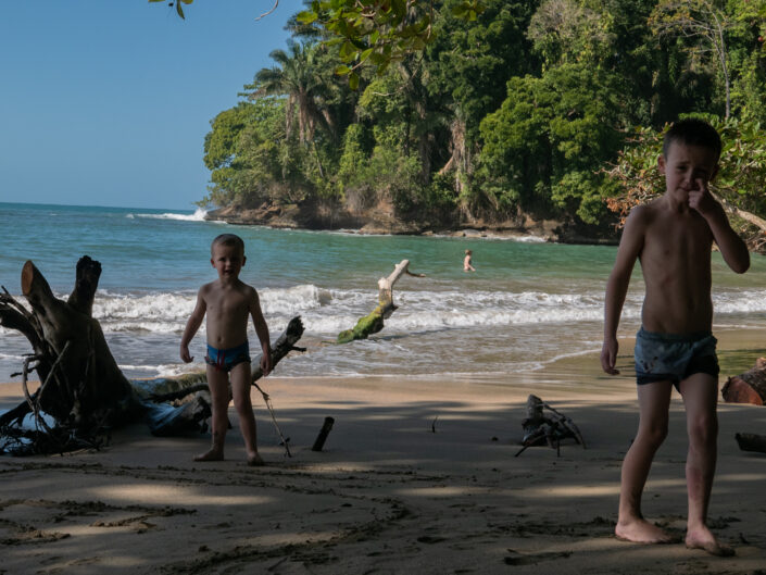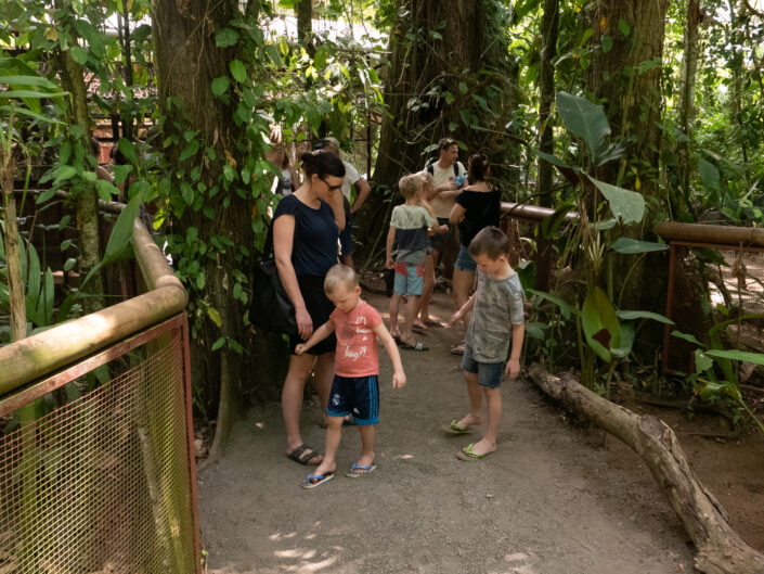 Vi tog hen til ”The Jaguar Rescue Center” – et sted som modtager sårede dyr, passer og plejer dem for at sætte dem ud i naturen igen, når de er klar. Der var aber, krodiller, fugle og slanger. Det var en guidet tur på halvanden time, og den slags gider vores børn altså ikke – måske ikke så underligt når de ikke forstår sproget. Senere tog vi til stranden og badede i kæmpe bølger. Det var en skøn strandtur med en god portion junglestemning.
