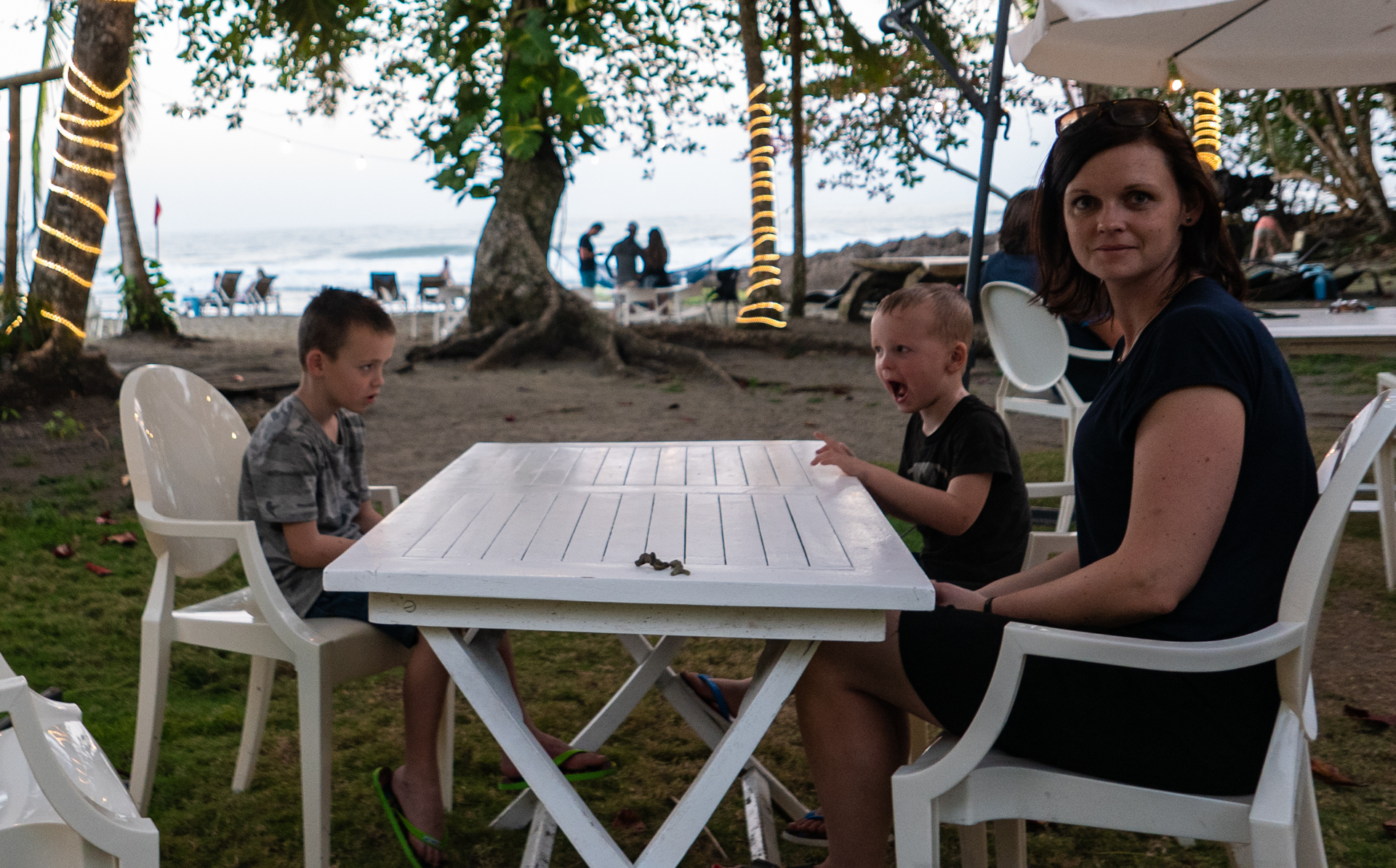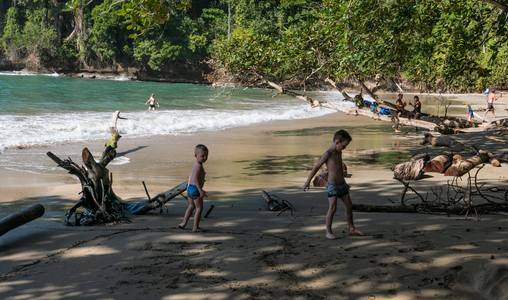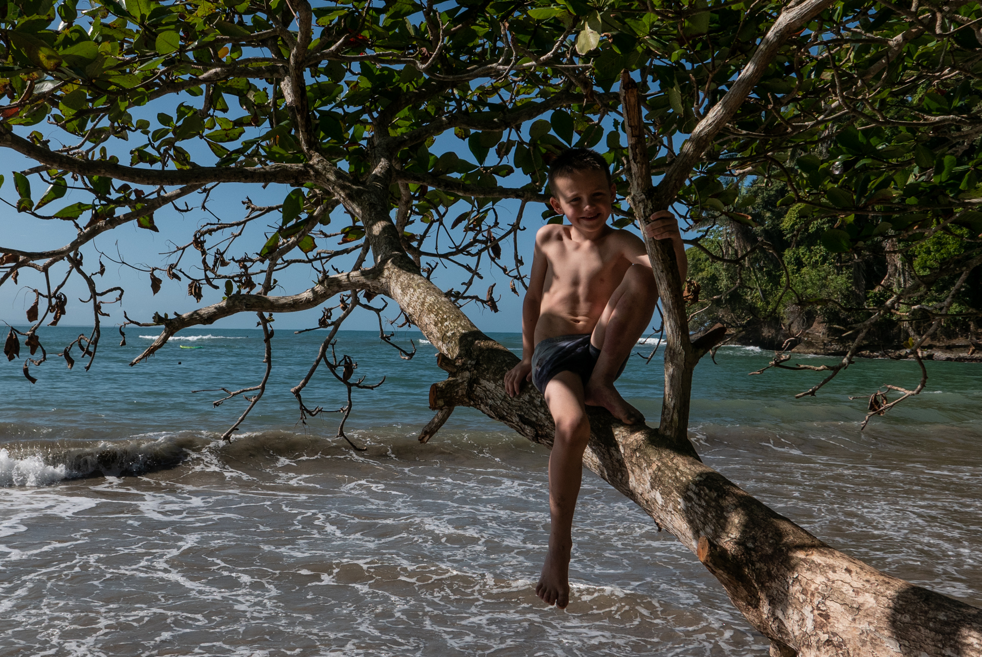 Vi tog hen til ”The Jaguar Rescue Center” – et sted som modtager sårede dyr, passer og plejer dem for at sætte dem ud i naturen igen, når de er klar. Der var aber, krodiller, fugle og slanger. Det var en guidet tur på halvanden time, og den slags gider vores børn altså ikke – måske ikke så underligt når de ikke forstår sproget. Senere tog vi til stranden og badede i kæmpe bølger. Det var en skøn strandtur med en god portion junglestemning.