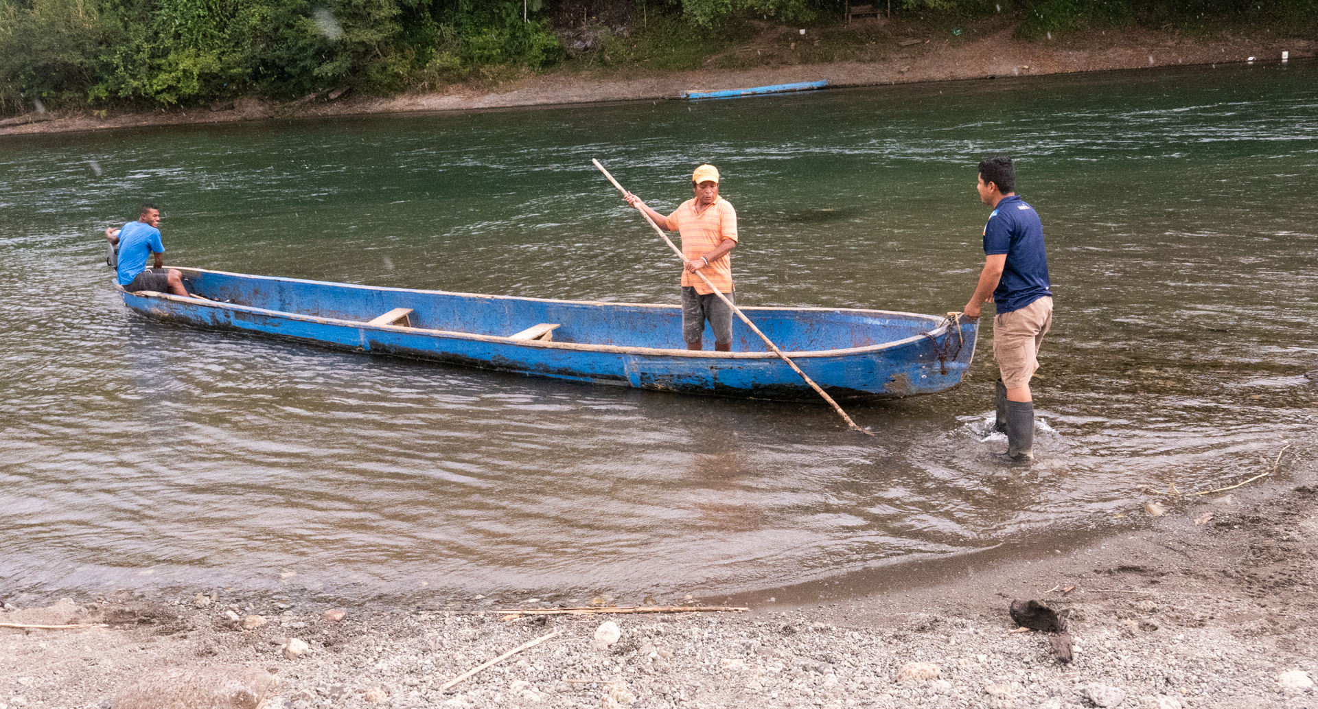 Vi gik tilbage til floden, drengene tog en dukkert, og indianerne sejlede os tilbage igen.
