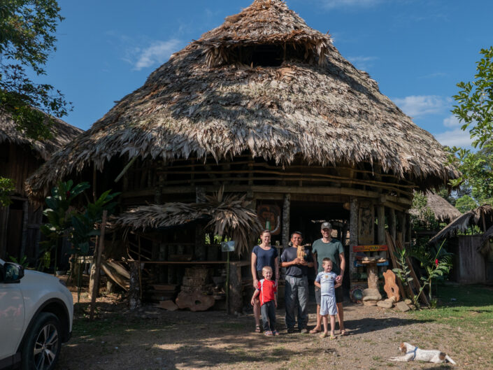 Efter et par dage i Puerto Viejo tog vi på en guidet tur op i bjergene, hvor vi besøgte nogle indianerfællesskaber, som bor dejligt primitivt. Der var plads til 15 personer på turen, men der var kun os, så vi havde vores guide Alex, for os selv. Alex er biolog og interesserer sig for fugle og er god til engelsk. Det var cool at have muligheden for at stille en masse spørgsmål om Costa Rica. Vi kørte en times tid op i bjergene indtil vi kom så langt ud, at wifi er unormalt, og Alex fortalte os om alt det vi så. Et ord som gik igen i alt hvad han fortalte er ”community” – ret så meget handler om at være en del af et fællesskab, og at bidrage til et fællesskab. Vi så nogle hospitaler og skoler på vejen. Det er meget normalt at børnene går 3-4 km. hver vej til skole. Bor man længere væk, så kommer skolebussen og henter en. Adam syntes det var lidt vildt at børnene skulle gå så langt hver dag.