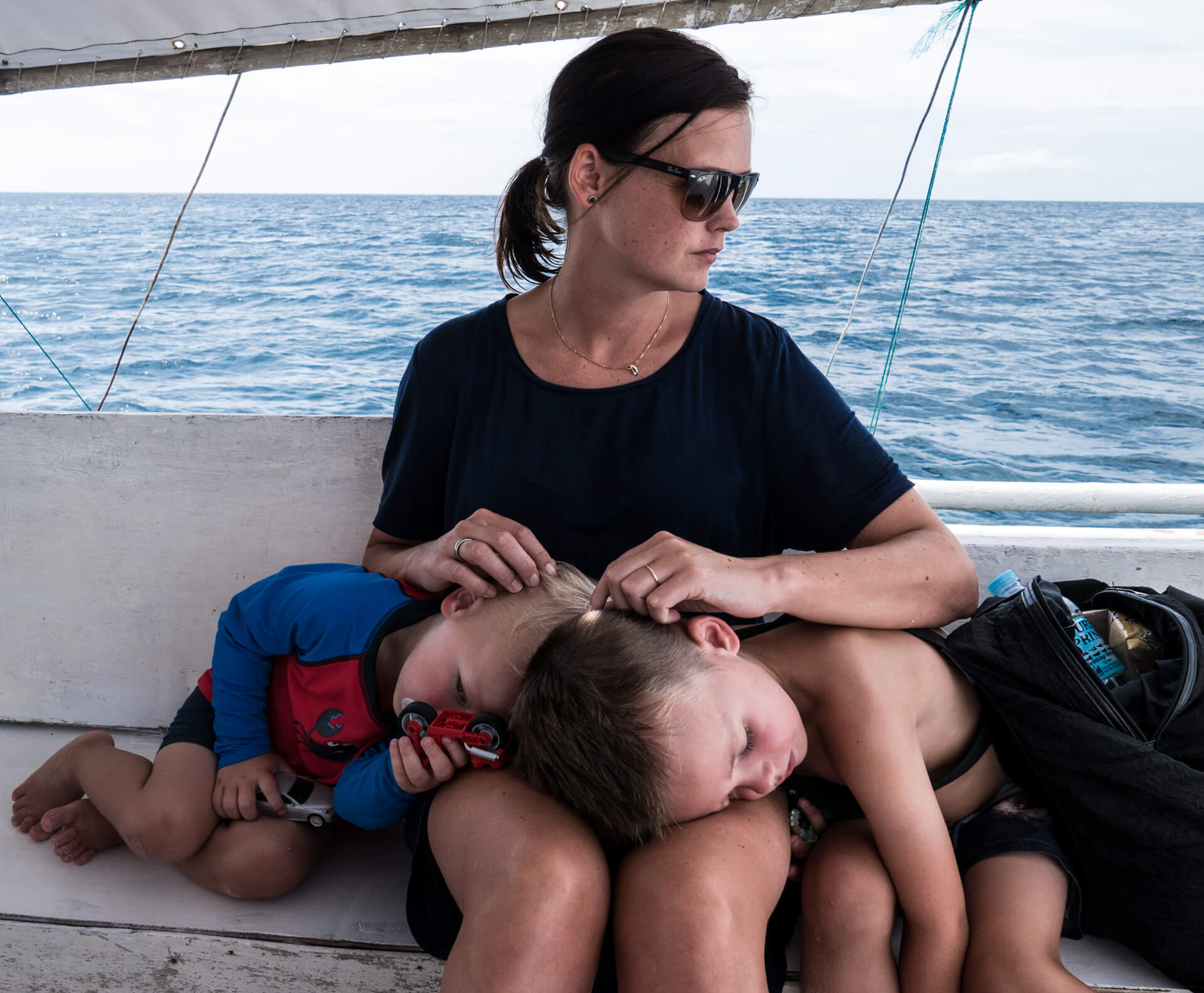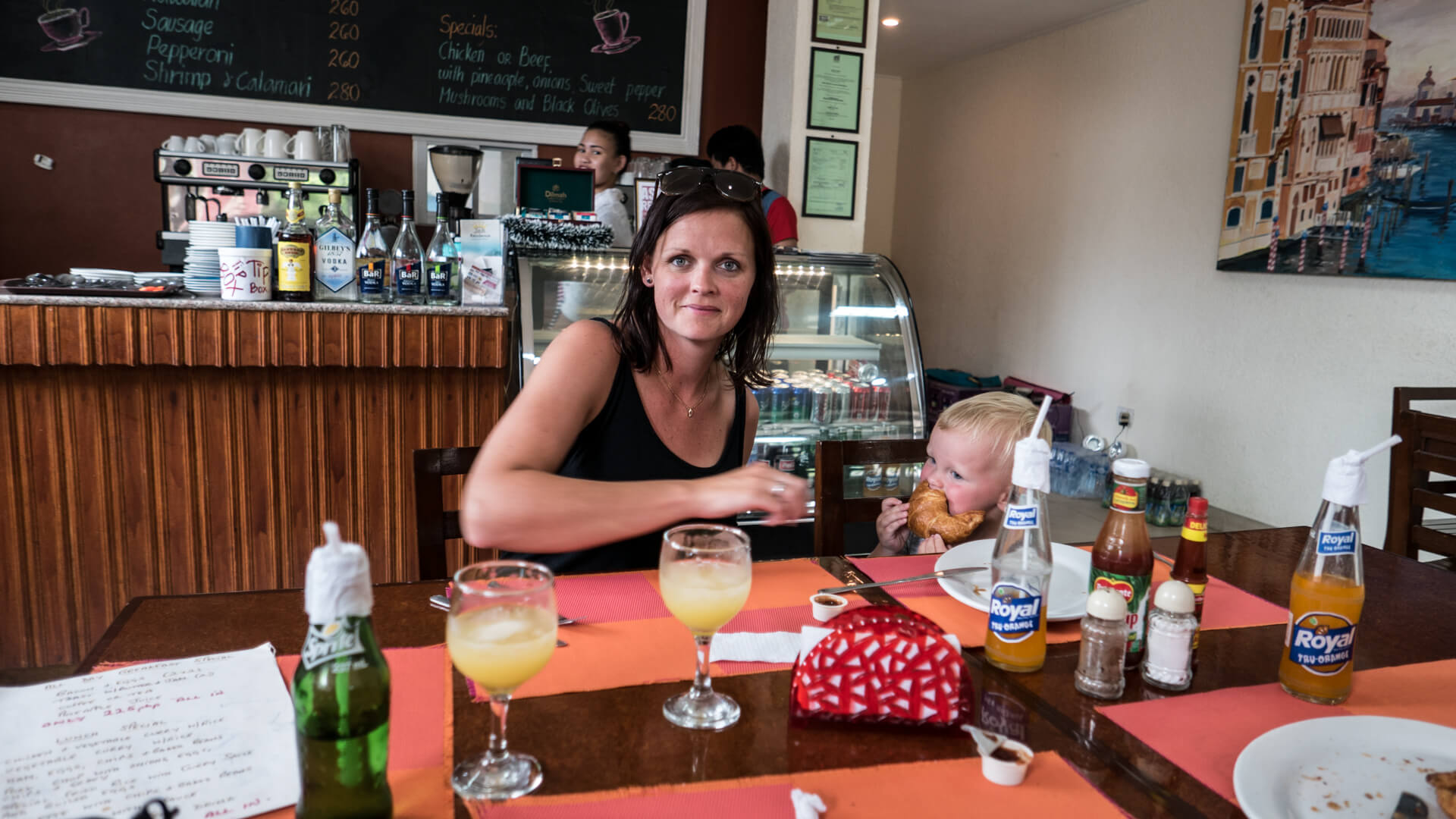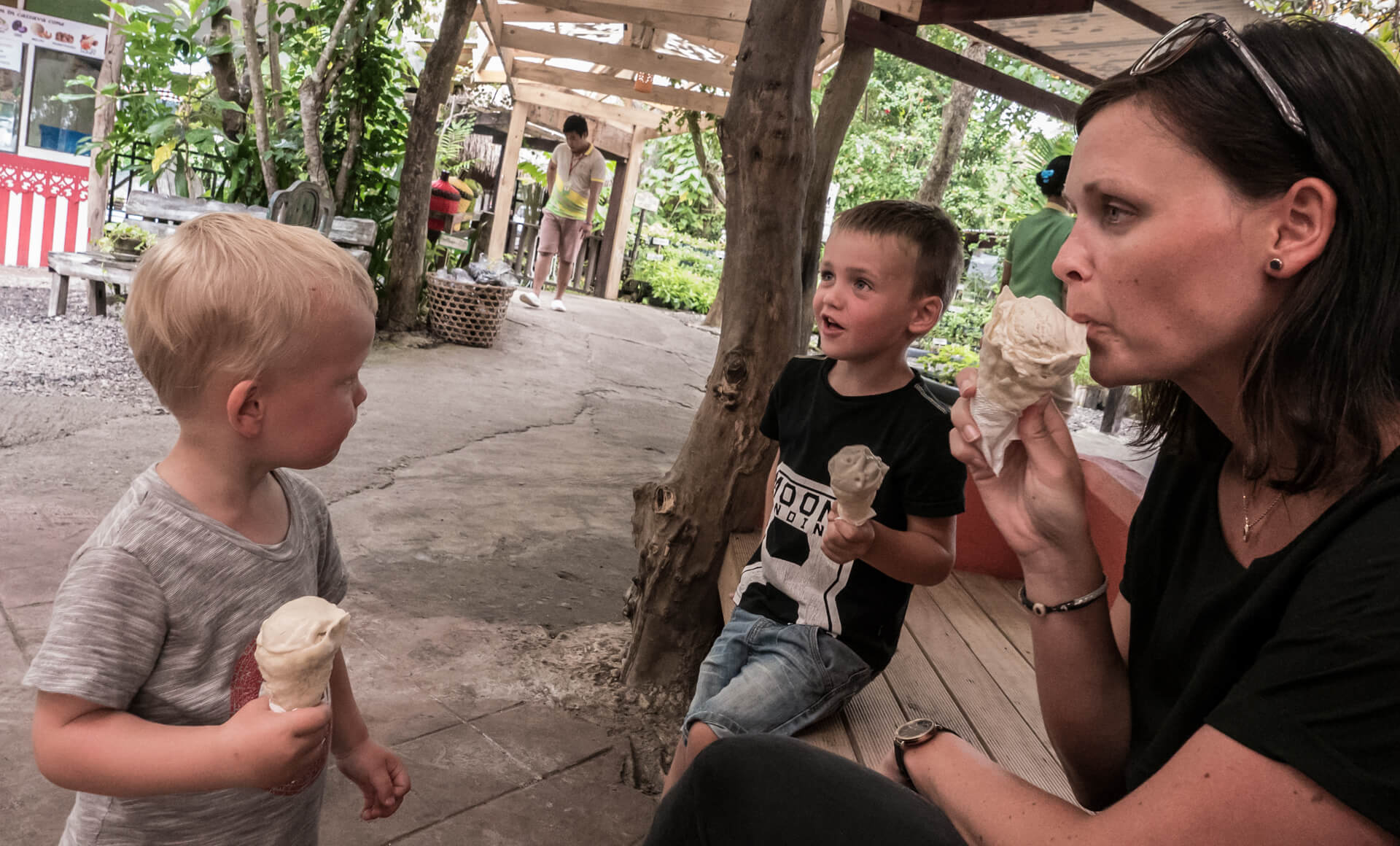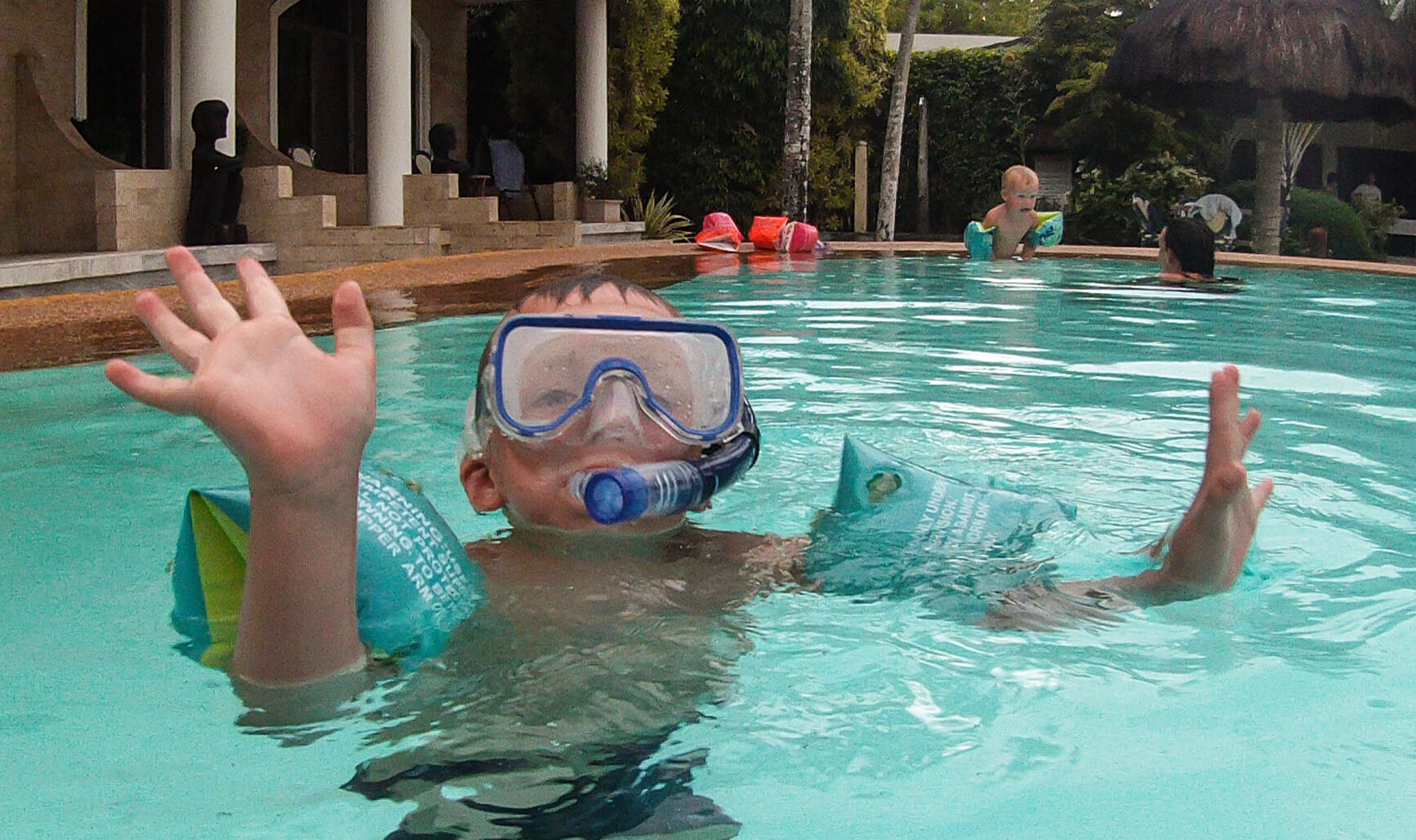 Vi har tænkt på, at det er sådan lidt med Filippinerne, at der ofte er to versioner én ”på-afstand” og én ”tæt-på”. På afstand er de Filippineske strande smukke, med udsigt til de karakteristiske både, som ligger rundt omkring. Kommer man tæt på, oplever man uundgåeligt lavvande, hvor man ser de bunker af skrald, som flyder rundt på havbunden. På samme måde med bådene, som er perfekte at snorkle fra – på afstand ser de smukke og originale ud – når man så kommer afsted går det op for én, at man umuligt kan føre en samtale, mens man sejler, fordi larmen fra motoren er så høj (forhindrer dog ikke Viggo i at sove J). Jonas har lært en af tjenerne lidt at kende, og ved første øjekast ligner han én, der intet mangler. Når man kommer lidt tættere på, viser det sig, at hans liv består af 6 dages arbejdsuger på 12 timer, og den ene dag, han har fri, der må han i skoven for at fælde brænde, da de ikke har en ovn. Han bor med sin kone og tre børn i en meget primitiv bambushytte, og han har stort set aldrig tid til at være sammen med sine børn. Han tjener 300 pesos om dagen – det svarer til 41 kroner – det er en timepris på 3,5 kr.