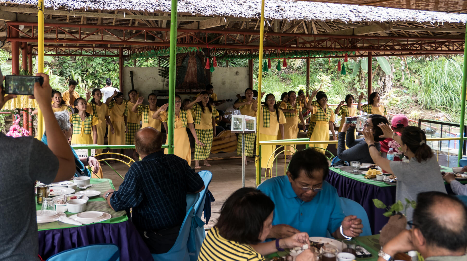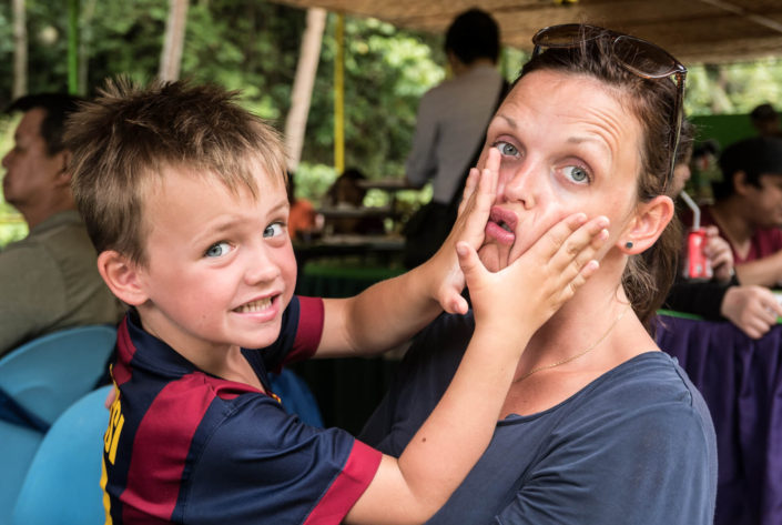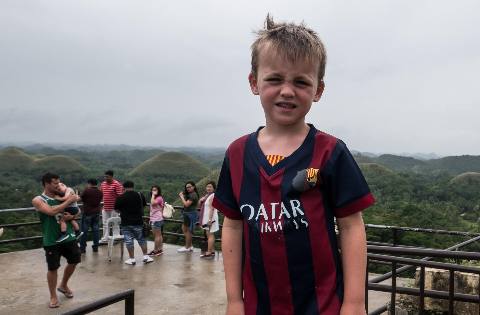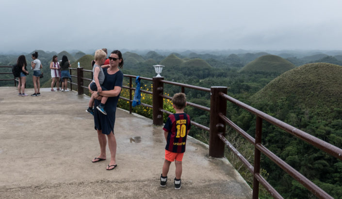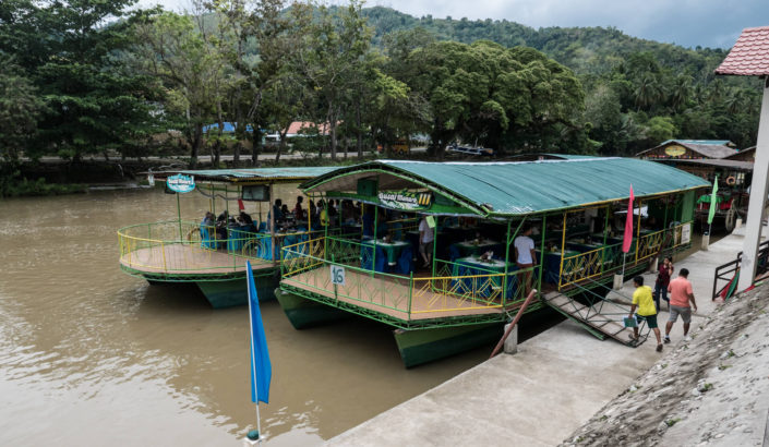 På anbefaling fra nogle australiere, vi mødte den første dag, som bor her på Bohol (øen), fik vi hurtigt lavet en aftale med en lokal tricycle-chauffør. Gilbert, som han hedder har kørt os rundt til forskellige attraktioner i løbet af ugen. Vi har også været på tur til the chocholate hills, som er et must-do, når man er på Bohol (se billederne – så siger navnet sig selv). En del af turen var at spise frokost på Loboc River Cruise – en båd-restaurant, med vaskeægte filippinsk mad og levende musik. Her troede vi lige, at vi var sådan lidt cool med de lokale – det var vi så ikke. Vi var de eneste hvide ombord og pyh det er lidt spændende med sådan en buffet, hvor man ikke kan lade være med at tænke på, om den mad, som står på buffet’en også stod der til det sidste hold gæster, der var ombord – og hvor det meste af maden ikke er noget, vi selv ville vælge på et menukort. Men altså – drengene gik ombord i fiskechips’ene, og Jonas og jeg “nød” en autentisk filippinsk oplevelse med vestlig pop, sunget med på karakteristiske asiatiske lidelsesfulde måde – de sang bl.a. “Yesterday” og “all my loving”. Men det er lidt svært at beskrive – for en stor del af oplevelsen er den høje luftfugtighed og søde/svedige/fiskeagtige lugt af flod. En på opleveren – som man siger 🙂