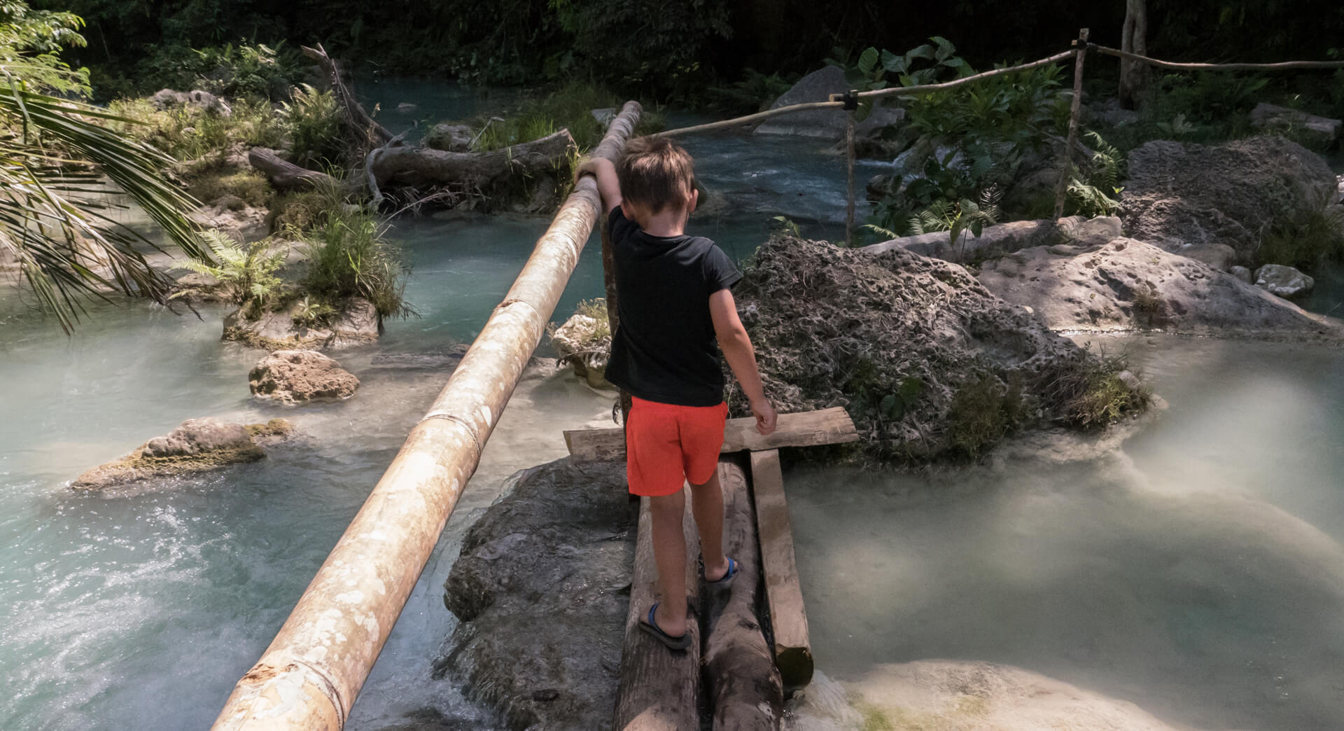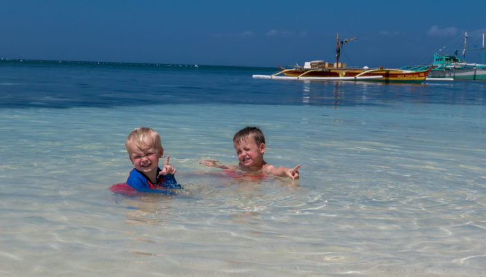 Vi er på Siquijor – en lille isoleret ø. Øen er den tredje mindste på Filippinerne, og det tager ca. et par timer at køre rundt på den hovedvej, det strækker sig langs kysten, som byder på hvidt sand, turkisblåt vand og masser af palmer. Her er ikke nogen store byer, men mere eller mindre små landsbyer rundt omkring, hvor der er små “købmænd”, som sælger alt fra mel, der står i sække på det støvede betongulv, hjemmelavede smykker, som hænger rundt omkring, brød, som for det meste er sødt, og benzin i halvanden liters colaflasker. Måden at komme rundt på er ligesom på Bohol på trycycle, og overalt hvor vi kommer er vi en attraktion i os selv, på grund af vores lyse hud, som vi ellers synes er blevet ret brun efterhånden. Viggos hår tiltrækker stadig masse af opmærksomhed, og han er blevet god til bare at smile og sige “hello”. Filippinerne er søde og hjælpsomme, om end vi stadig er lidt i tvivl om, om deres hjælpsomhed primært er en del af deres kultur, eller primært udtryk for et forsøg på at få os til at give dem nogle af vores penge. Ex. når tjenerne er (nærmest overdrevent) venlige over for vores børn – følger der så en forventning med om ekstra tips?