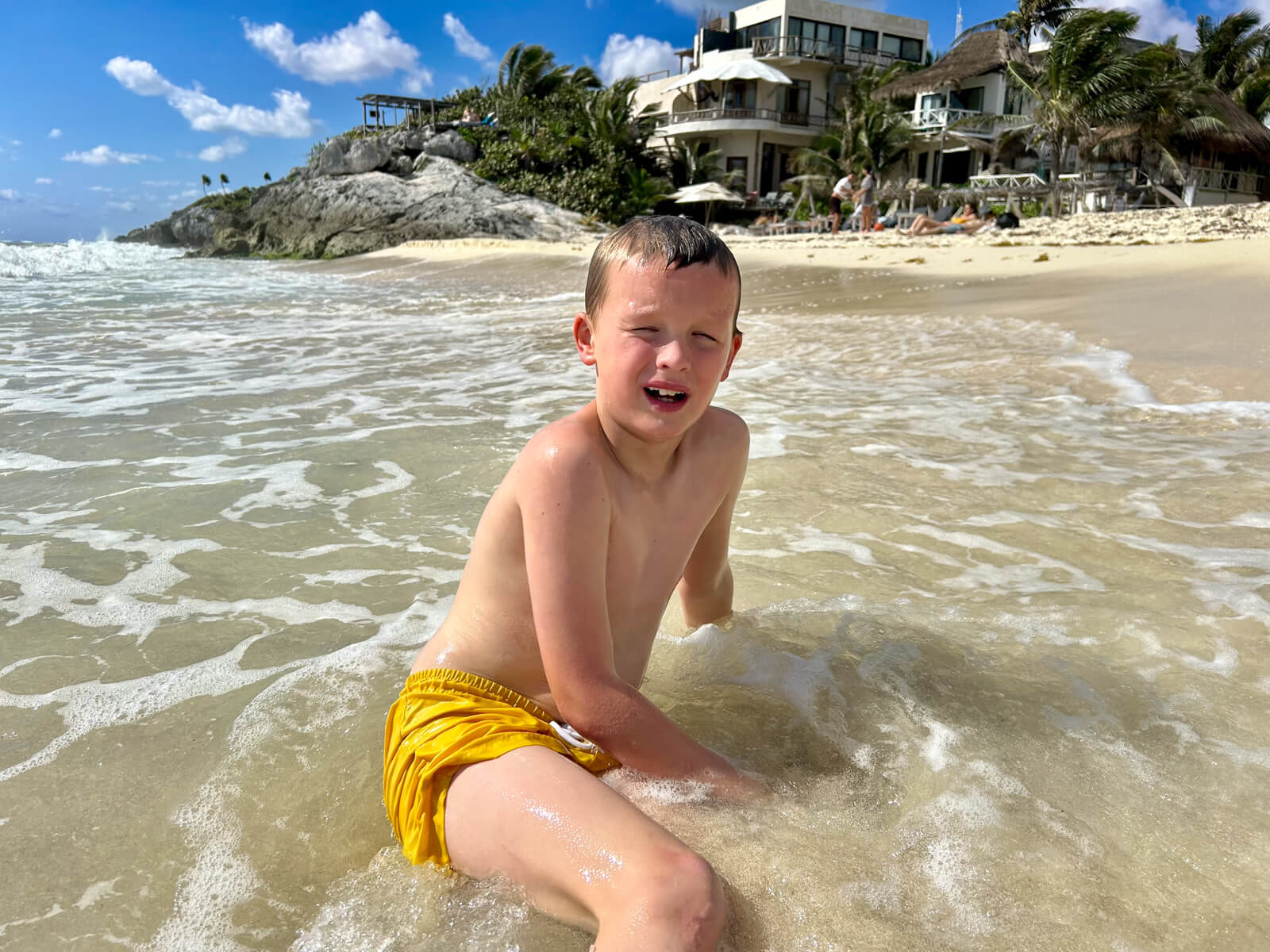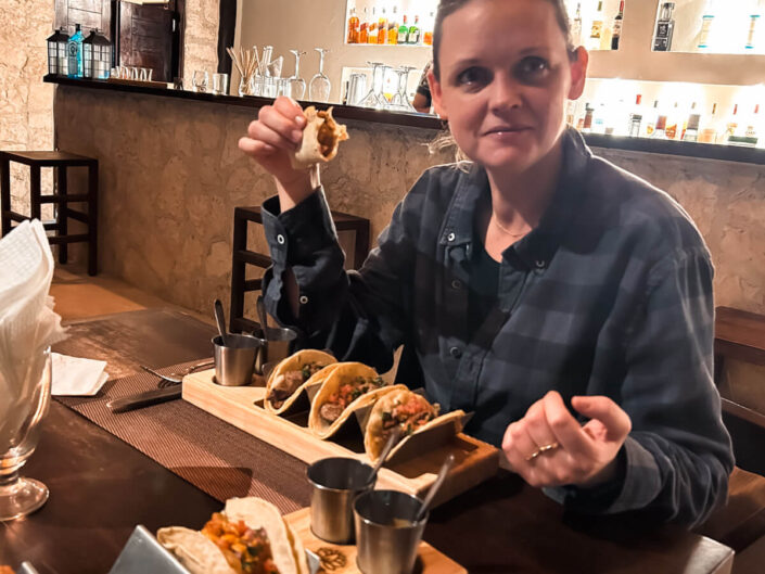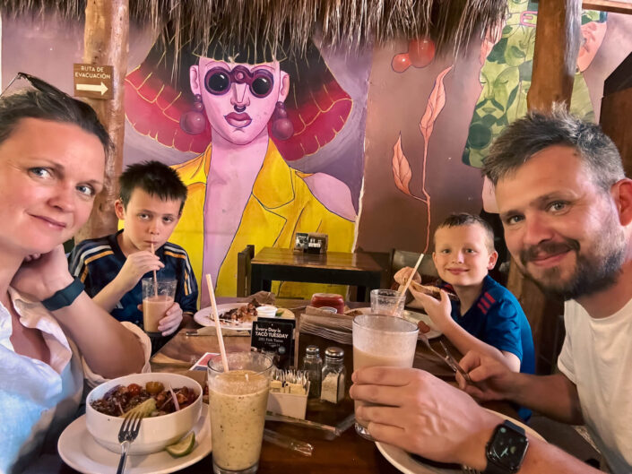 Vi nød vores første dage med et par ture til stranden, hygge og kortspil ved et beach resort, badning i stille vand og badning i store bølger. Sandet er så hvidt, fint og blødt, at det at stikke sine tæer ned i det – efter måneder med kulde, sne, blæst og regn i Danmark, bare lige præcis er det, sjælen trænger til. Hvilken fryd. I en skøn kombination med sol, tacos, palmer, guacamole, kortspil, strand og pool har vi fået lige præcis den start på vores ferie, som vi kunne drømme om.