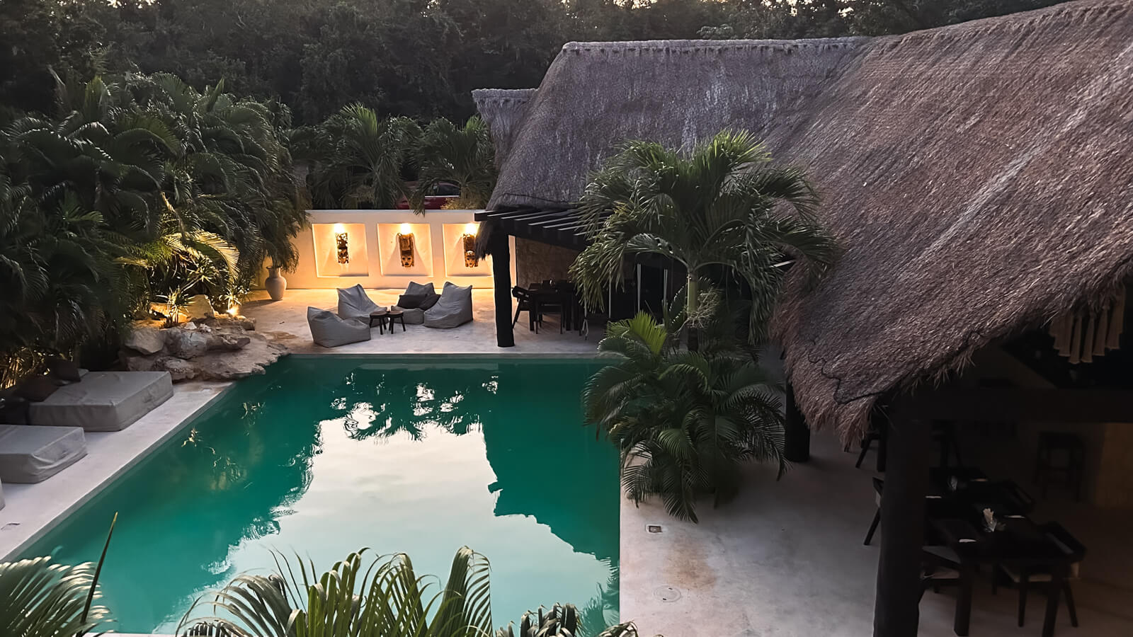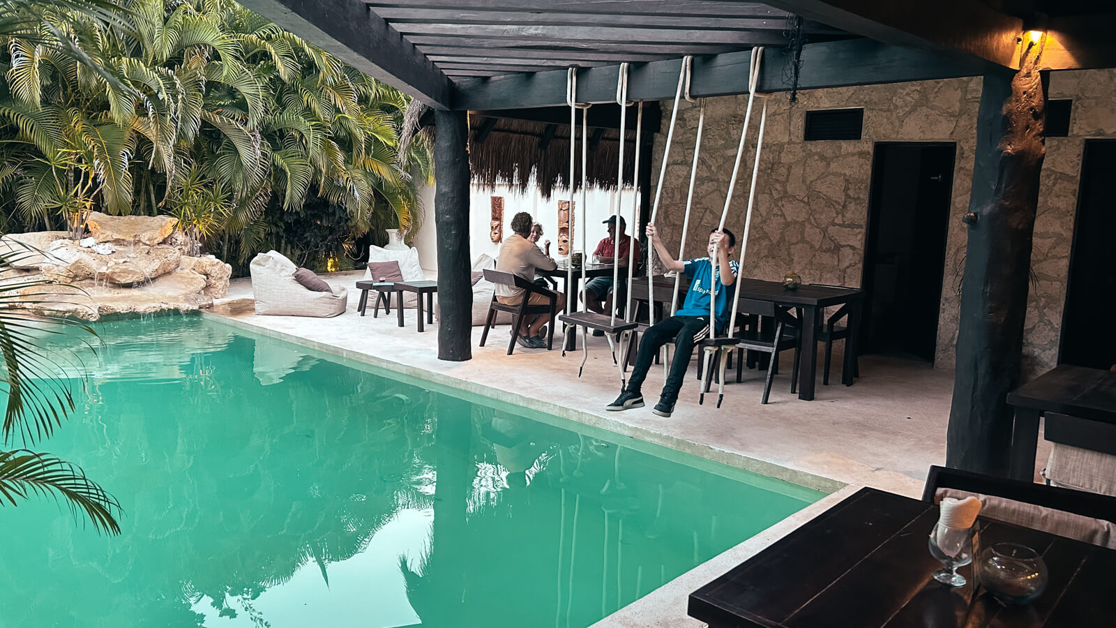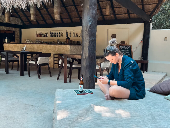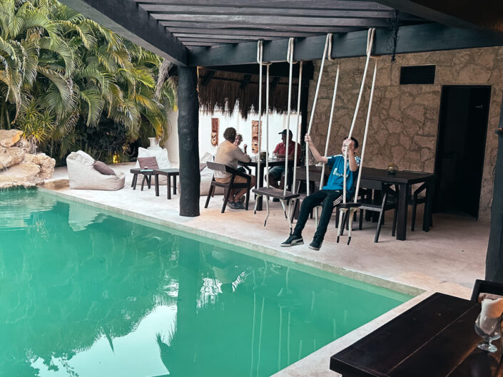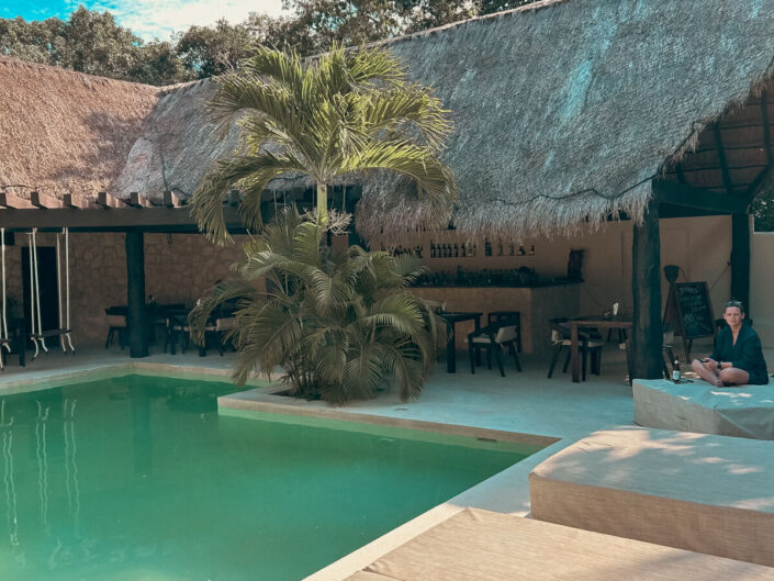 Afsted gik det mod syd langs den Caribiske kyst – til XCacel Dreams Jungle Resort 15 minutter nord for Tulum, og hvilken drøm det var at komme frem. Det skønneste lille resort midti junglen med kun 6 værelser. Vi havde stort set det hele for os selv de to døgn vi var der. Dette inklusiv en kok, der lavede mad til os, som det passede, levende musik den ene aften, som vi stort set var de eneste til at, høre, dejlig pool omgivet af palmer og gode drinks shaket af bestyreren, som ikke talte et ord engelsk, men som var charmerende nok til, at det ikke var noget problem.
