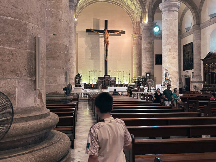 Vi havde to dage i Merida, som er en af de større byer i Yucatan og Mexico. Køreturen gik overraskende godt, og da vi kom lidt for tidligt til Merida besluttede vi os for at spise en frokost i et storcenter tæt på hvor vi skulle bo. Storcentret var – til vores overraskelse – fuldstændig som at træde ind i et moderne og lækkert storcenter i Europa. Lidt af en overraskelse efter vores andre oplevelser. Men det var skønt med lidt luksus.