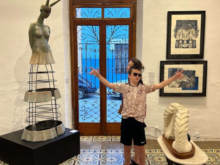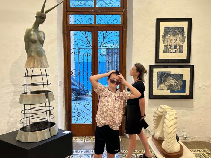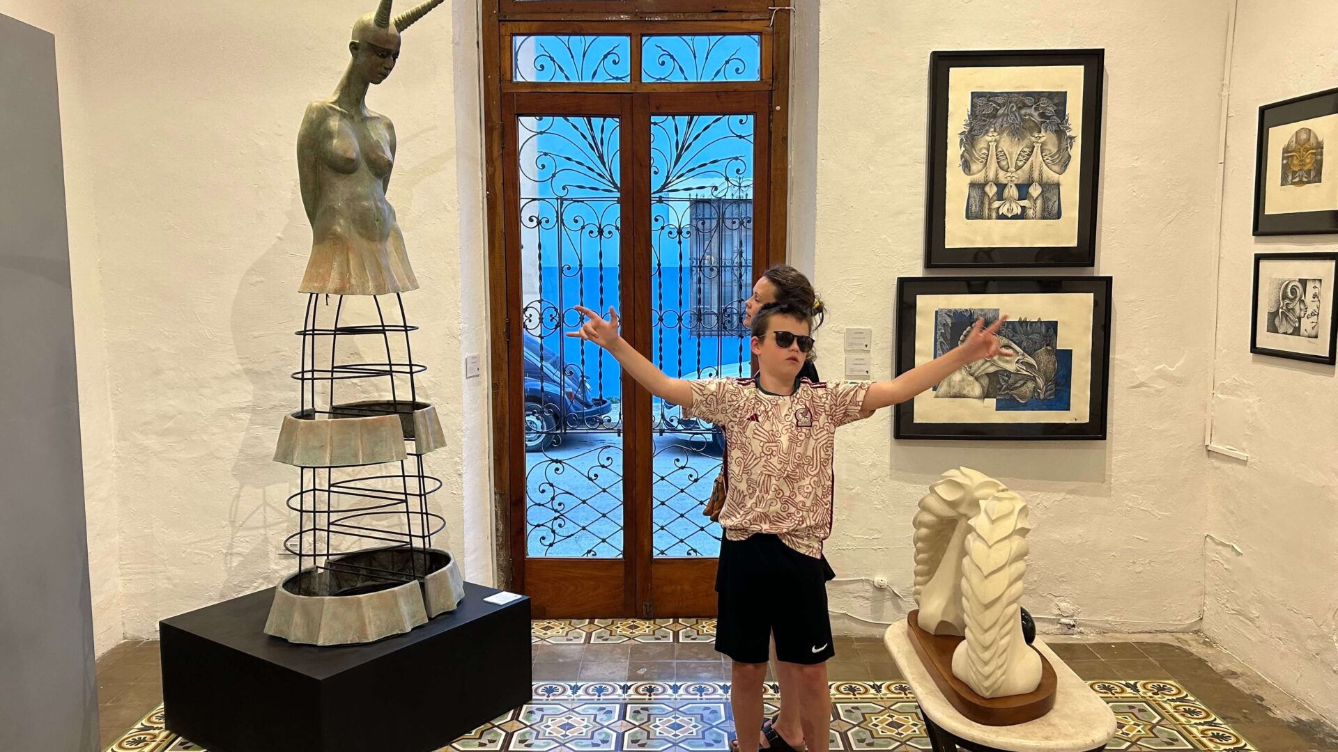 Vi tog på bytur inde i Merida. Merida er en spændende og meget varieret by. Jeg havde fundet et galleri, jeg gerne ville se, og så skulle vi selvfølgelig se byens vartegn; katedralen i midten af centrum med parken rundt om. Vi var på gåben rundt i byen – en tur på ca. 4 km., og her kunne vi mærke, at drengene er blevet ældre. Ikke så meget pjat og brok, når vi skal ud at gå og se noget, og det betyder så uendeligt meget for stemningen i ferien, om alle lige kan mande sig op og tage ja-hatten på – også når man skal ske noget, som ikke lige stod på ens egen ønskeseddel.