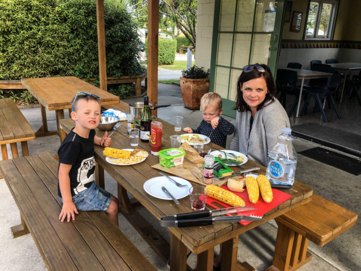 De sidste par dage har vi tilbragt i Timaru (2 timer syd for Christchurch), hvor vi har været i vandland og på en hyggelig tur igennem Caroline Bay (havnefronten) og gennem byen. Ellers har vi slappet af på campingpladsen, hvor børnene har hoppet på hoppepude. Der var nogle andre danskere, som vi faldt i snak med – hyggeligt som man pludselig har meget til fælles som danskere – blot fordi man er på den anden side af jorden. Vi har mødt flere danskere og tyskere som er i autocamper her i NZ. Det mest klassiske er tilsyneladende at tage 3-4 uger i autocamper. De fleste vi har mødt, som nærmede sig afslutningen af deres ferie var godt og grundigt klar til at komme ud af camperen. Vi er lidt spændte på, om vi får det på samme måde, når vi nærmer os afslutningen af vores camperferie i Australien. Lige nu nyder vi det hele i fulde drag i al sin langsommelighed. I dag tog jeg mig selv i, da vi sad og slappede lidt af efter køreturen af sige: ”Det er da noget af en træstup, der er derovre”. Jonas kiggede derover, og kiggede så på mig, og begyndte at grine. Hvor ligegyldig en kommentar er det lige? Måske et meget godt eksempel på, at vi er ved at være helt i slowmotion her. Det hele går dejligt langsomt., solen skinner, børnene leger (for det meste). Nu er det ved at være farvel til New Zealand. Når vi kommer tilbage (med større børn, eller uden børn), så skal vi så meget mere ud op opleve naturen til fods. Det glæder vi os til.