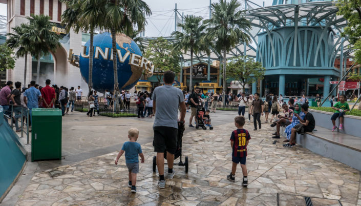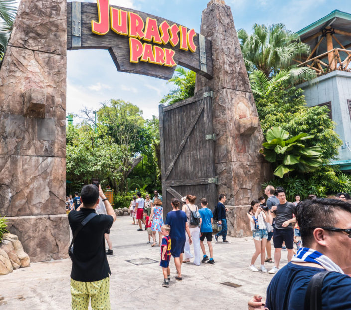 En af dagene tog vi til Sentosa – en lille ø, som er 100% dedikeret til turisterne. Her er der gigantiske resorts med alt hvad den klassiske turist drømmer om: Casino, Akvarie, strande, pools, restauranter, Vandland og den slags. Den største attraktion er nok Universal Studios – en forlystelsespark, som vi tog ind i. Her var der skabt forskellige ”verdener” – baseret på forskellige temaer: Madagascar, Jurassic Park, Sci-fi, Transformers, Hollywood, osv. og vi var inde at prøve forskellige forlystelser. Mange steder skulle vi dog stå i kø relativt lang tid. En ting, der var interessant (og irriterende) var, at man kunne købe særlige express-billetter (et tillæg til billetten), som gør, at man må gå foran i køen. Det var virkelig asocialt, og ville aldrig ske i Danmark. Næste gang køber vi nok express-tillægget, selvom det måske var meget sundt for os for en lille stund at prøve at være dem, der har mindre end de andre.