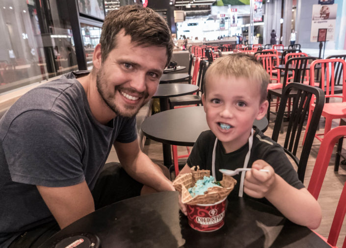 Så skønt det var at være et par dage i storby! Måske især på grund af kontrasten til det meget rolige Panglao på Filippinerne har vi nydt Singapore i fulde drag. Vi har fået god mad: Italiensk, Indisk og junk, og vi har nydt at være lidt i luksus. Før ankomsten havde vi nok forventet noget a’la Dubai, men her gjorde Singapore et noget bedre indtryk. I Singapore er der træer og grønne områder overalt, og så er der utrolig rent. Og så er der (i modsætning til Dubai) fortov, så man kan gå alle steder, og egentlig kan man komme relativt langt til fods – med Adam i klapvognen og Viggo på Jonas’ skuldre. Dog er det også utrolig billigt at køre taxa, så det gjorde vi også en del.