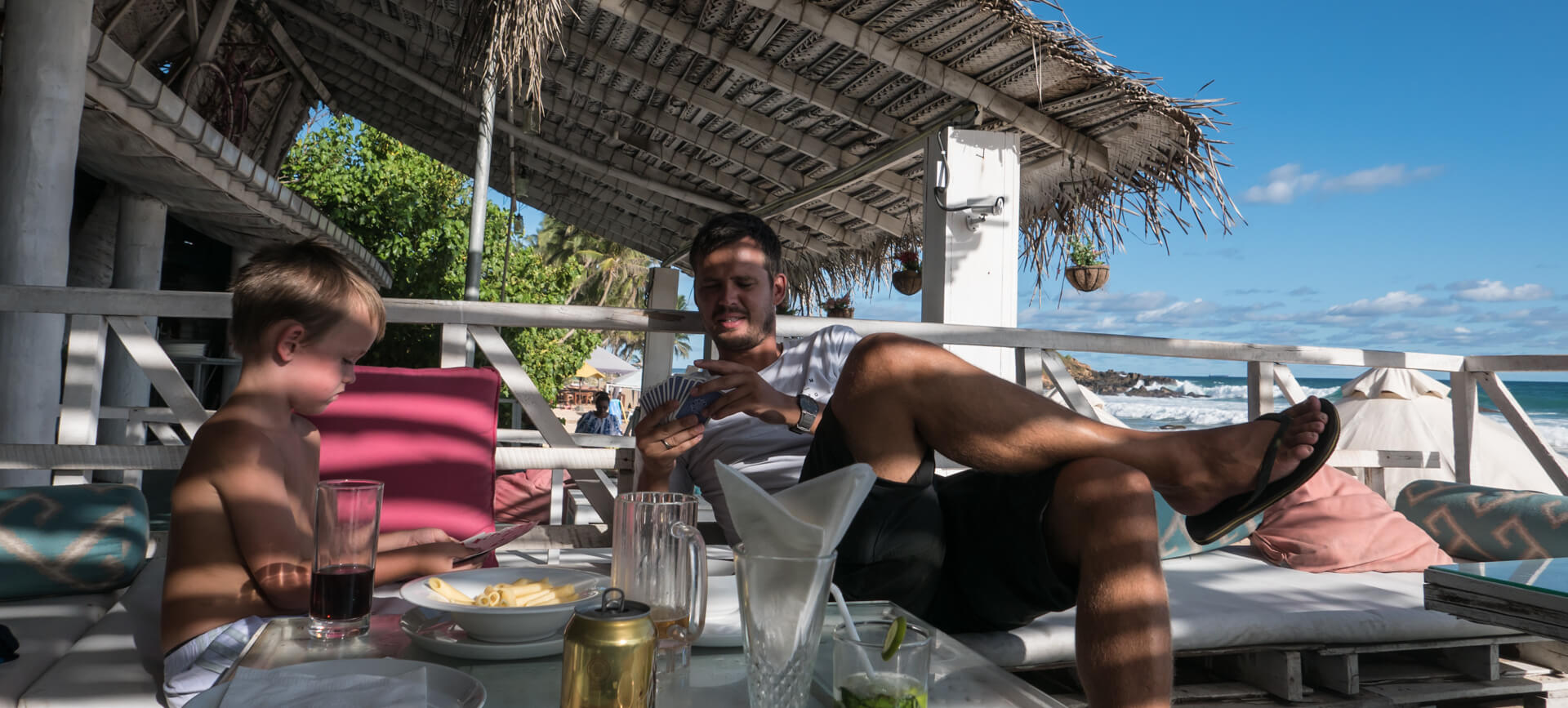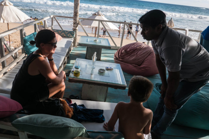 Lige nu er vi logeret ind på noget, som hedder Tropical Villas i Negombo. Det er nok det bedste sted, vi har boet i Sri Lanka – med to store værelser, terrasse, pool og den sødeste smilende tjener, som løber rundt (altså – virkelig løber rundt), for at servicere os gæster. Terrassen er lige ved poolen, og vi laver stort set ikke andet end at bade og slappe af.