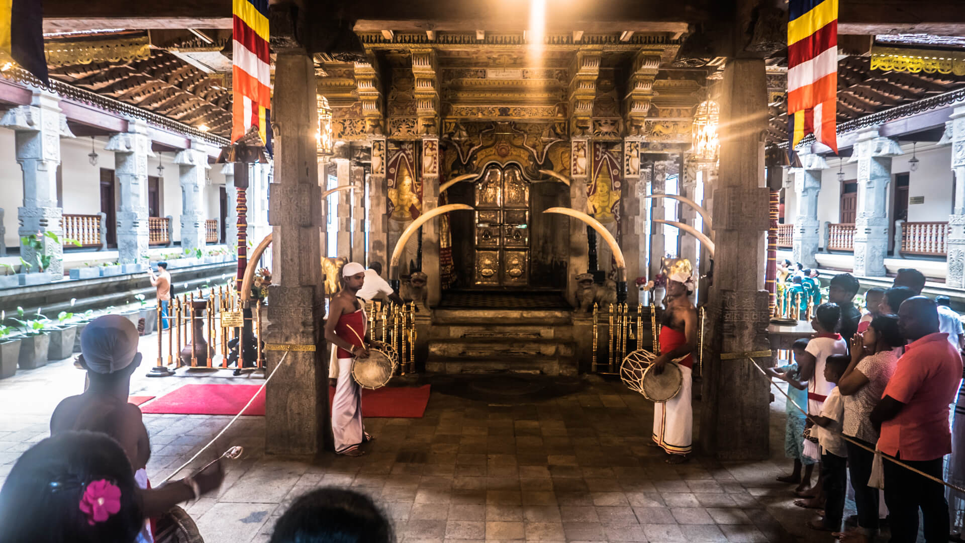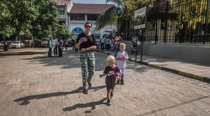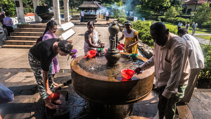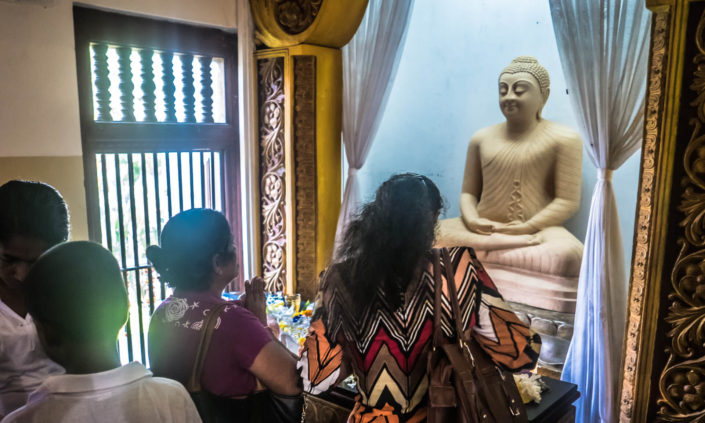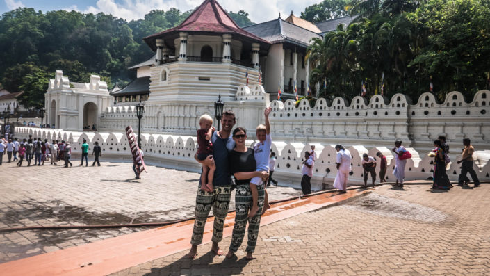 Så har vi været i ”Buddhas tand”, som er et af de vigtigste templer i Sri Lanka. (Navnet har det, fordi en af Buddhas tænder efter sigende er inde i templet). Der var et væld af mennesker i templet, og vi fik os en personlig guide – en lille og rar mand, som fortalte os alt det, man skulle vide, og som stille og roligt lavede plads til os, så vi kunne se alt det vigtige. Han fortalte og fortalte, og hver gang han var færdig med noget, så sagde han instruerende ”translate (altså til børnene) og take picture!” Det gjorde vi så.