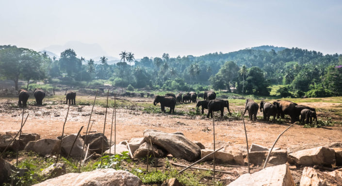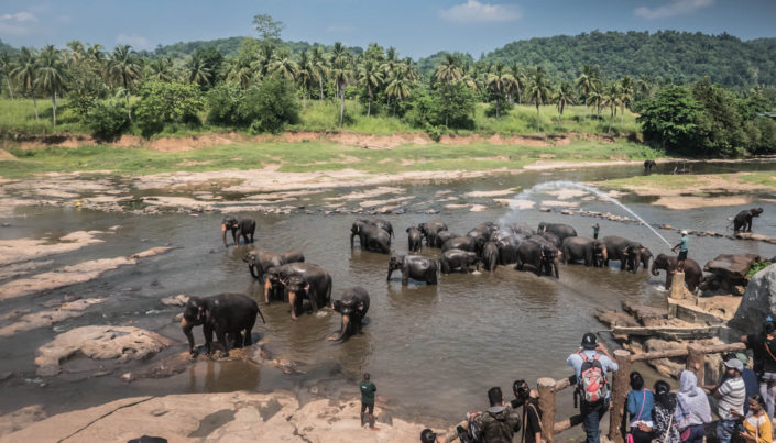 Endelig har vi været på elefantbørnehjem i Pinnawala – et hyggeligt (men noget turistet) sted, hvor der er ca. 50 elefanter. Vi så at de ”små” baby-elefanter fik sutteflaske, og vi fulgte med, da de alle skulle ned og bade.